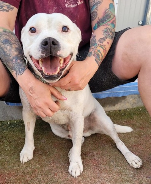 Ice wurde abgegeben. Er zeigt sich hier bei uns recht unkompliztiert, typisch für die Rasse fordernd im Spiel aufgedreht. Schmusen und kuschlen findet er toll, mit anderen Hunden zeigt er bisher keine Probleme. Er hat nicht viele Muskeln, heißt er wird erstmal langsam trainiert. CT sowie Röntgen war bei ihm unauffällig. Er ist geimpft, gechippt und kastriert.